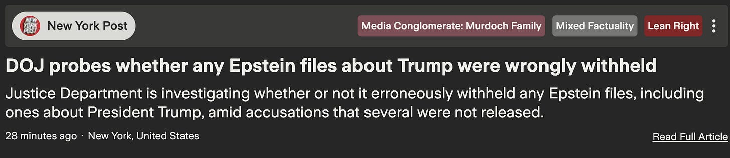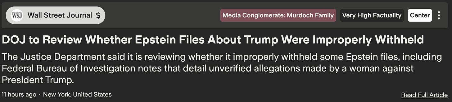 When the Murdoch-owned New York Post and Wall Street Journal finally picked up this story, their angle surrounded the DOJ probing whether these docs were “mistakenly withheld.” Their focus was on trying to give plausible deniability to a potential cover-up, rather than on the allegations themselves.
